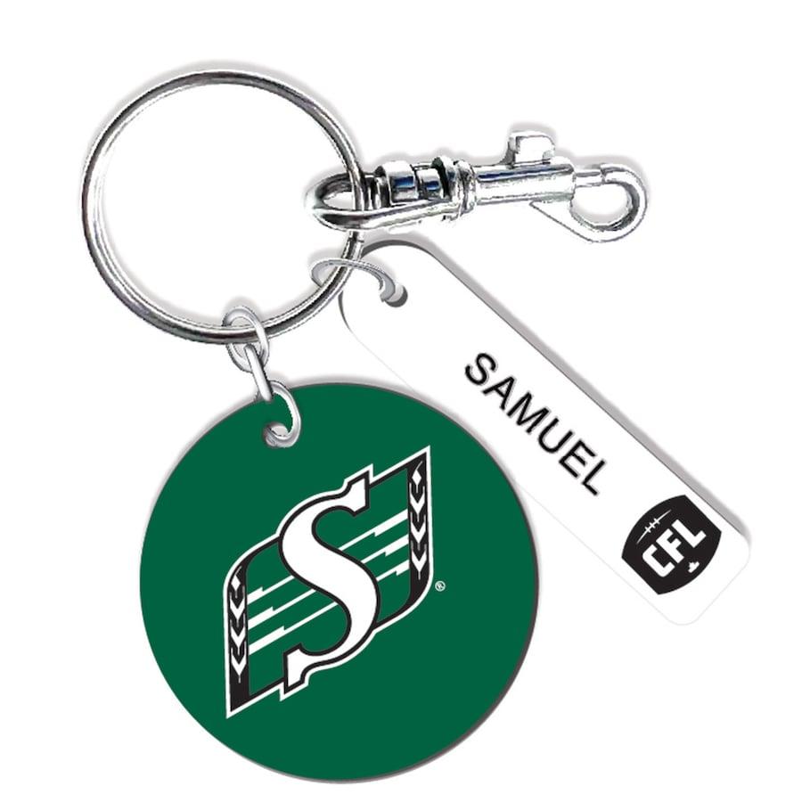 Saskatchewan Roughriders Personalized Leather Round Keychain
