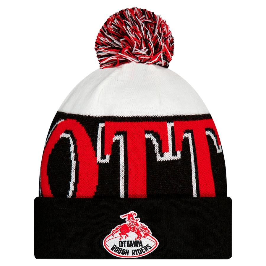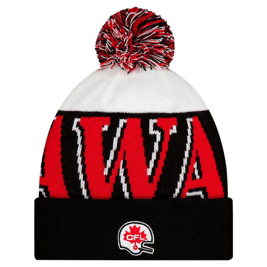 Stay warm while repping your Ottawa Redblacks with this New Era Turf Traditions Cuffed Knit Hat with Pom. This cuffed knit hat features an embroidered team logo on the cuff, so you can show your Ottawa Redblacks pride all winter long. Knit team wordmark graphics and an embroidered CFL logo on the back cuff add extra details that any fan will appreciate.