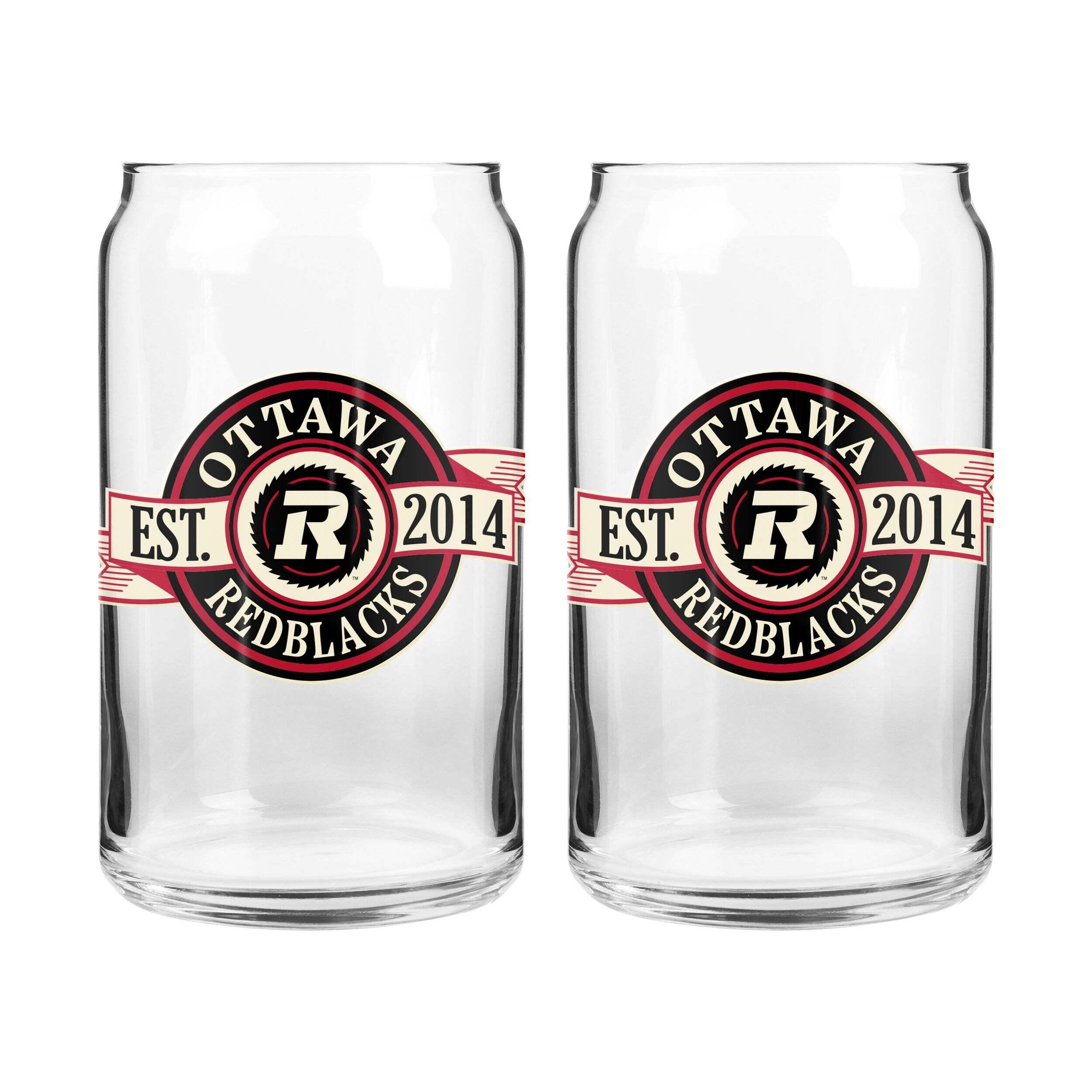 CFL Ottawa REDBLACKS Can Glass Cup Set, Dishwasher Safe, For CFL Football Fans/Collectors, 2-pk