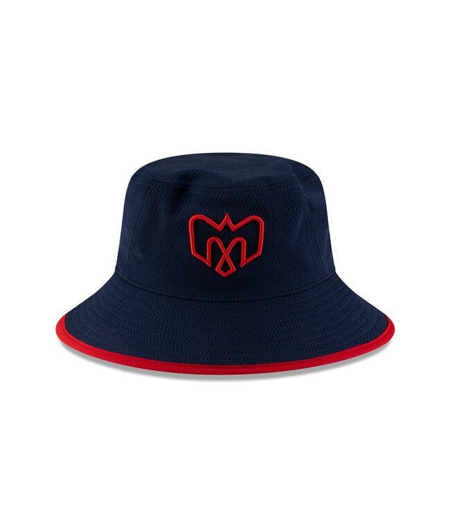 Stay shaded with this navy Alouettes bucket hat ! The bucket hat features an embroidered Montreal Alouettes red logo at the front with an New Era red logo on the left side of the head. Additional details include a black adjustable cord, one size fits most and a red underside.